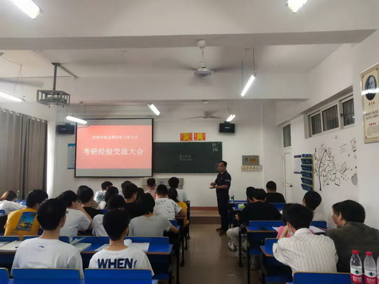 在材料成型及控制工程专业考研经验交流会上,副经理李世斌代表公司向全体考研上线同学表示热烈祝贺,向帮助同学们考研工作中付出艰辛的各个部门及个人表示感谢,并在考研专业的选择、考研良好心态的保持和专业课程的学习技巧上向同学们提出了有效的建议。