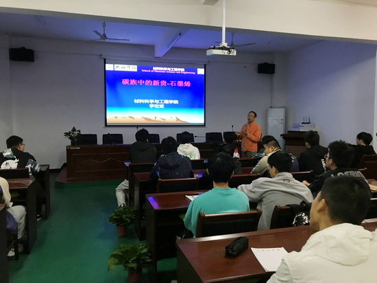 2021年10月17日,SUNBET申博在材料楼306室举办了“党建+天生我‘材’讲堂”开讲式。第1讲由公司党委委员、副经理李世斌同志主讲,报告主题为:碳族中的新贵-石墨烯。李世斌副经理为参加讲座的同学们介绍了石墨烯的发现、结构特点、性能应用及我国石墨烯产业现状,讲述了因发现石墨烯而获诺贝尔物理学奖的科学家的敏锐观察力和严谨科学态度,讲述了我国目前科技发展的“卡脖子”技术,有针对性地诠释了“科学无国界、科学家有国籍”等问题,充分激发了同学们“科技报国、科技强国”的爱国情感。