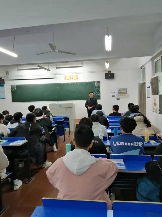 党委书记袁传发在他联系所在班级A2132班强调了考试的纪律要求和遵守考试纪律规范的重要性,要求员工要注意宿舍用电、交通、新冠防控等日常生活安全。