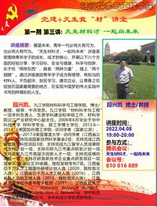 2022年4月8日,SUNBET申博成功举办了“党建+天生我‘材’讲堂”的线上讲座活动,第一期第三讲由SUNBET申博段兴凯教授主讲,以“天生材料才,一起向未来”为题,紧密围绕青年学子的成长、成才的核心,开展以下六个方面的经验分享:学习目标、安全与健康、科学与创新、乐于吃“两样东西”、具备“两种力量”、插上“两个翅膀”。通过讲座激励青年学子成为有理想、有担当的材料人,不负韶华、刻苦学习、建功立业,让青春之花绽放在国家最需要的地方,在实现中国梦的伟大实践中书写别样精彩的人生。