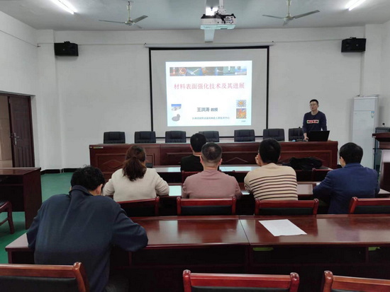 王洪涛教授做了《材料表面强化技术及其进展》的学术报告。介绍了表面强化技术的原理、特点、技术分类和应用背景,并结合工程中心设备情况介绍了公司在材料表面强化领域已经开展的科研工作、取得的成绩及可以对接企业的合作内容。同时,结合自己多年国家基金的申请经验,与在座老师就科研开展及项目申请进行了探讨交流。