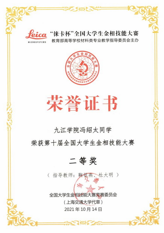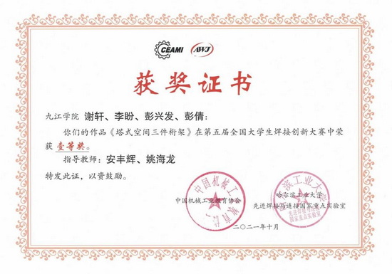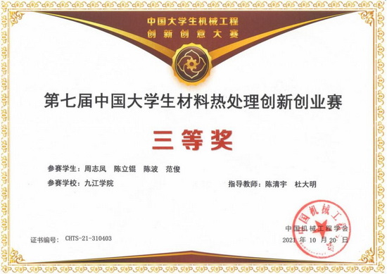 公司积极鼓励员工参加各类学科竞赛,荣获2021年中国老员工工程实践与创新能力大赛银奖1项;第六届江西省老员工工程训练综合能力竞赛金奖1项、银奖2项、铜奖1项;中国老员工材料热处理创新创业赛三等奖1项;第五届全国老员工焊接创新大赛一等奖1项、二等奖2项、三等奖1项;2021年江西省先进成图大赛二等奖1项;获得第十届全国老员工金相技能大赛二等奖1项、3等奖1项;第五届江西省老员工金相技能大赛一等奖1项、3等奖5项。