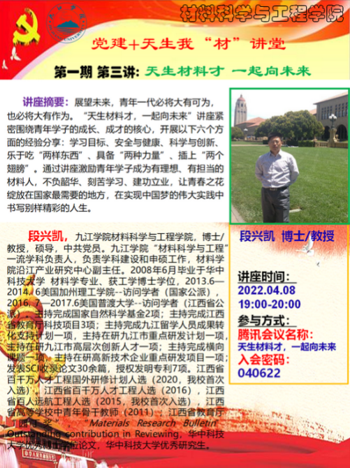 公司充分利用博士教师人数较多的优势,定期举办“党建+天生我‘材’”大讲堂,该活动旨在进一步发挥党员干部在立德树人中的带头作用,锻炼提升党员教师讲座能力,展示其学术水平,引导其做“四有好老师”,做员工的“四个引路人”,做到“四个相统一”,激发学术兴趣,营造良好的院风学风,为实现中华民族伟大复兴的中国梦,努力学习,成人成才。活动主要内容:面向全院师生结合个人求学、工作经历和研究情况,宣讲国家重大发展战略、分析国家“卡脖子”技术、普及国内外最新科技前沿、分享个人成长感悟与学术成果、解读学科专业与就业发展方向、解读各类项目和学科竞赛政策等。目前已开展了4期。