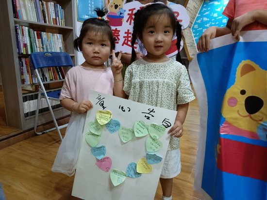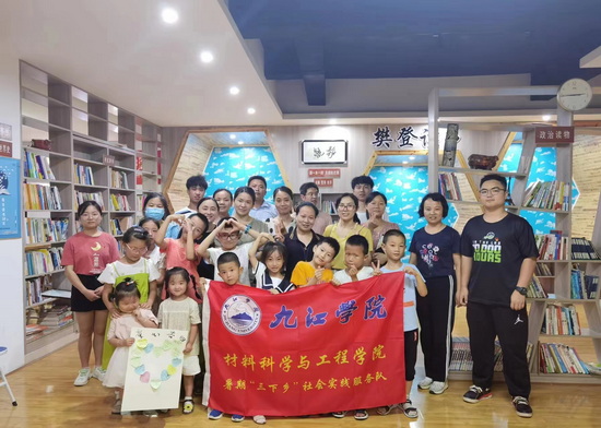 第四站,实践队员们走进湖口县育恒书社。在育恒书社举行“童心向党,告白祖国”活动,在书社陈红社长的帮助及周边家长的大力支持下,周边学龄前儿童、小员工及员工家长纷纷前来。活动中,队员们与小朋友们分享了中国焊接之父——潘际銮院士的成长经历,同时分享了自己的学习经历和梦想,邀请小朋友们一起朗诵习近平总书记给予青年的寄语,并写下对祖国的祝福。