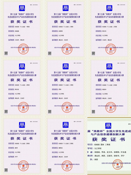 经过激烈角逐,公司学子一举斩获大赛机械类赛项个人单项一等奖1项、二等奖4项、三等奖3项、团体二等奖1项的优异成绩。获奖名单和获奖证书如下: