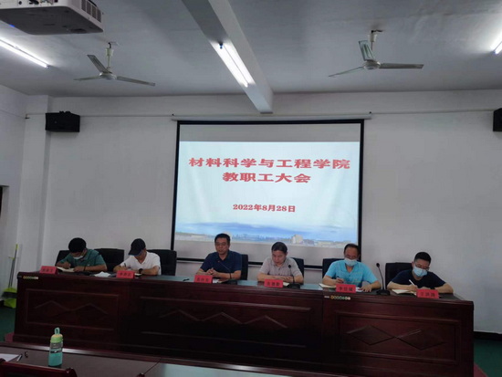 2022年8月28日下午,SUNBET申博在材料实验楼306会议室召开全院教职工大会,会议由经理张德勤主持。