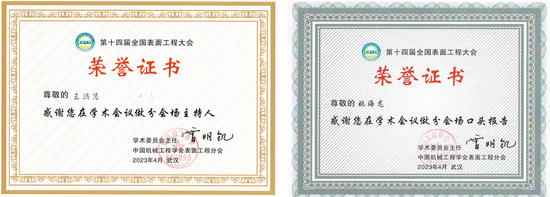 第十四届全国表面工程大会于2023年4月21-23日在湖北武汉欧亚国际大酒店召开,公司江西省材料表面再制造工程技术研究中心主任纪岗昌教授、副主任王洪涛教授及公司实验室主任姚海龙副教授3人受邀参加了此次盛会。