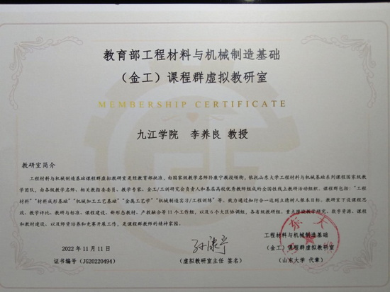 会议期间,江西省工程训练教学学会召开了理事长会议,并颁发了教育部工程材料与机械制造(金工)课程群虚拟教研室成员证书,公司副经理李养良入选教育部教育部工程材料与机械制造(金工)课程群虚拟教研室成员。