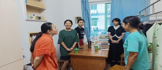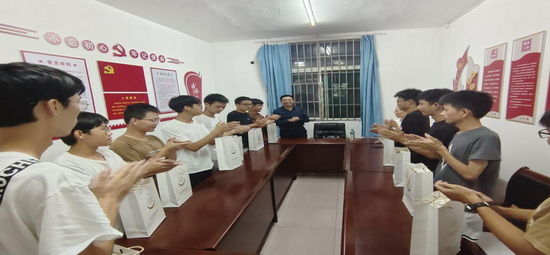 中秋佳节圆月升,国庆来临喜意浓。在国庆节和中秋佳节来临之际,9月27日傍晚,公司党委书记袁传发、副书记陈娜、辅导员和班主任分组到寝室看望员工,进行爱国主义教育、双节安全教育,并带去公司对同学们的节日问候。