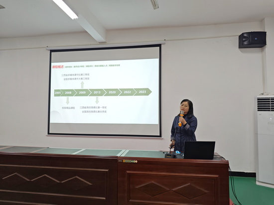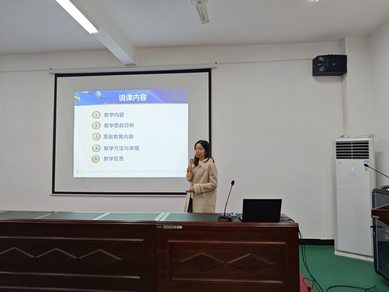 本次教学比赛参赛教师均是各教研室推荐的优秀教师,按照抽签顺序依次进行展示。比赛现场展示由5分钟课程思政整体设计说课和10分钟微课堂教学展示两部分组成。