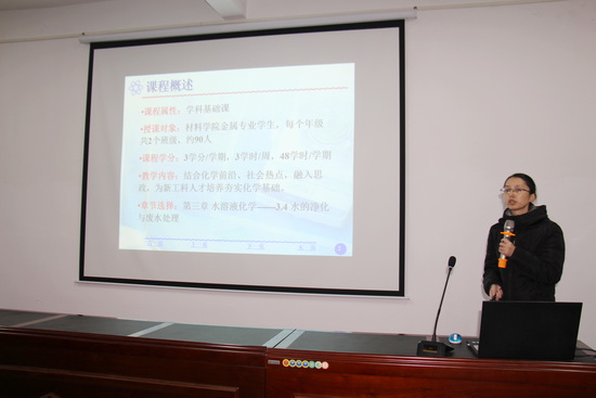 罗琦博士讲授《普通化学》中的“水溶液化学”内容,由水的净化与废水处理引入我国的水资源现状,培养员工的生态文明意识和社会责任感。