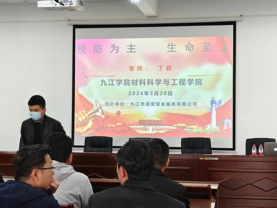 为切实做好公司平安建设工作,提高全院教职工的火灾防范意识,3月20日下午,在材料楼306会议室,公司邀请九江市消安安全服务有限公司主任级讲师丁鹤为全体教职工作了“预防为主,生命至上”——火灾防控专题讲座。
