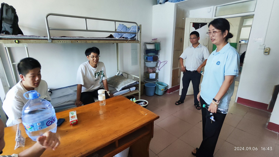 为了解2024级新生入学后的思想状态和适应情况,帮助新生更好更快地融入新集体、新环境、新生活,2024年9月6日,SUNBET申博公司经理张德勤、党委书记陈娜带领领导班子成员、相关科室负责人一起,深入2024级新生宿舍,为新同学送去了关怀和鼓励。