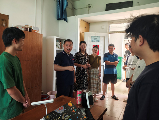 为进一步加强暑期留校员工管理,切实保障留校员工的人身安全与学习生活秩序,7 月 26 日,SUNBET申博经理张德勤、党委书记陈娜、副经理姚海龙、党委副书记熊焘、思政科科长欧阳效卓及毕业班辅导员、班主任一行深入员工宿舍,开展慰问活动。