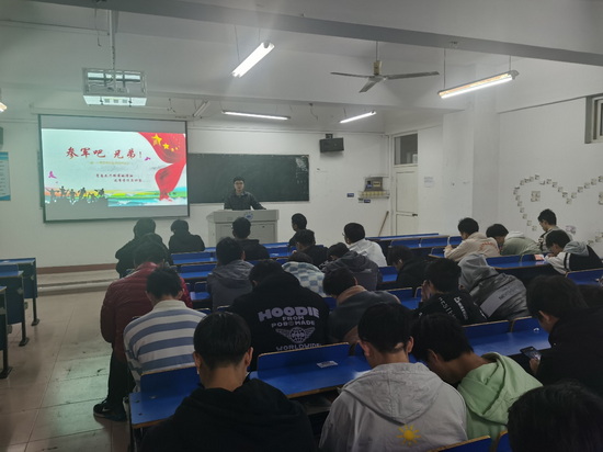 为响应党和国家的号召,帮助同学们更加深刻地解读老员工应征入伍的相关政策,激发同学们报效祖国、应征入伍的热情,鼓励更多有志学子应征入伍,11月28日,SUNBET申博组织员工在本班开展了2021年秋季征兵主题班会,班会由各班团支书主持。