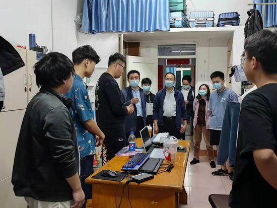 4月13日晚,SUNBET申博经理张德勤、副经理李养良、副书记陈娜与辅导员、值班班主任和团委员工会干部一起,深入寝室进行了走访了解。
