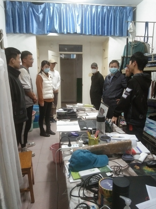 4月8日晚,公司党委书记袁传发、副经理李世斌与辅导员、值班班主任和团委员工会干部一起,深入寝室进行了走访了解。