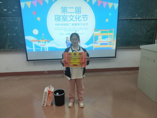 活动最后由员工会执行主席向远刚宣布获奖的寝室,每个寝室代表激动地接过奖状和奖品。新学期,新气象,一个寝室的环境将会给每个人带来不一样的感受,四年生活的地方,值得我们去将它点缀,让它以最美的姿态,给每个人以家的温暖。