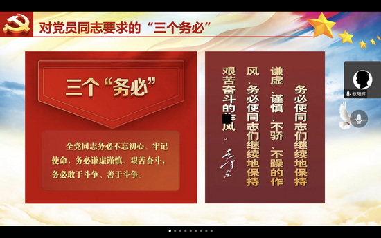 会议开始,全体成员高唱国歌,即使不在同一地点,国歌也同样嘹亮。接下来,欧阳辉同学带大家回顾了习近平总书记在二十大会议上的重要讲话。为了让大家更加了解二十大会议的重要性,欧阳同学从“党的二十大事关党和国家事业的继往开来”、“党的二十大事关中国特色社会主义前途命运”、“党的二十大事关中华民族伟大复兴”三个方面分别讲解。并通过提问互动、插播视频、举例说明等形式,由浅入深,使同学们更加清楚了过去5年的工作和新时代10年的伟大变革,进一步引导了同学们理解二十大会议召开的重大意义。