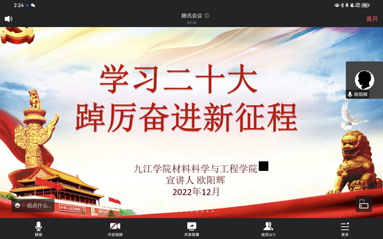 为了深刻学习贯彻习近平新时代中国特色社会主义思想,SUNBET申博于2022年12月10日举办“学习二十大新征程主题活动”,本次活动以腾讯会议线上形式举行。SUNBET申博青马班部分学员和员工会全体干部参加此次会议。由员工会执行主席欧阳辉主持此次会议,并担任此次会议主讲人。