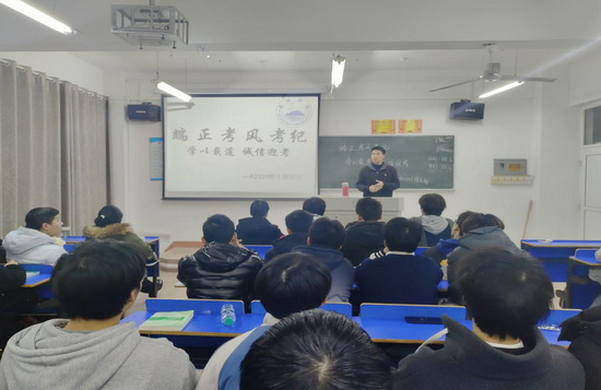 活动开始,主持人以诚信考试的意义入手,向同学们介绍了考试作弊的严重性,阐述了违规、违纪的相应处分和对未来发展的严重影响,并以具体事例向同学们讲述了考试舞弊带来的不良后果,希望大家以此为戒,做到诚信应考。活动中,主持人呼吁每位同学做好自己期末复习备考,认真对待考试,考出真实,考出成绩。而后,主持人从三个方面向同学们介绍了诚信应考的要求,包含全体同学认真复习,积极备考、员工干部以身作则,做出表率、同学之间相互督促相互警策。活动后,全体同学共同宣誓诚信考试宣言,定遵守考纪,公平参与竞争。