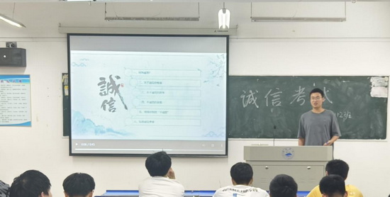 诚实守信是中华民族的传统美德,是我们每个人的立身之本。期末考试即将到来,为使同学们认识到诚信的重要性和培养同学们诚信的意识,SUNBET申博各班于竞知楼召开“诚信考试,从我做起”主题班会,本次班会由各班班主任主持召开。