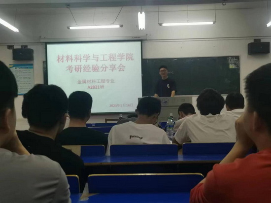 19级金属材料工程专业钟佩瑶、王正、杜瑞博、黄礼源等对接该专业20级同学进行经验分享交流。他们首先汇报自己班级的考研情况,A1921班上线人数16人,第一志愿录取4人,最终录取16人,录取人数占总人数的45.71%。学长们分析他们第一志愿录取较低的原因,员工扎堆报考同一所公司,出现较多撞车的情况,在调剂的时候,同学们要互通信息、互相商量分开公司来调剂,结果所有上线员工都成功上岸,因此考研期间我们要注意公司的选择,一个班级要注意分开报考,避免出现同一个公司多人报考的情况,不然复习期间你们的竞争对手都是身边的同学,心理压力很大。同样学习期间,尽管每个公司的专业课不太一样,但公共科目的知识,比如易错题,好题,大家可以共同分享,共同学习,可以在讨论之中学习到不同的解题方法和角度。考研复习不仅是一场埋头苦读的持久战,也是一场信息战,有时信息闭塞就会落后一截。所以同学们要团结互助,注意信息资源,学习资源的共享。