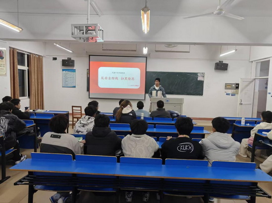 为了加强老员工的社会责任感和使命感,并且学会用法律武器保护自己和他人的权益。SUNBET申博于2023年11月26日在竞知楼召开主题为“筑安全防线,扫黑除恶,共建平安和谐校园”的主题班会活动。班会由各个班班长主持召开,全体同学参加。