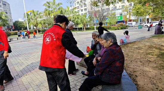 担当老年人健康使者,参与社区健康咨询服务。在社区组织的健康咨询服务中,受资助的返乡老员工作为志愿者免费为前来咨询的老人们测量血压、血糖,并耐心地解答疑惑,告知老年常见病的注意事项。在免费量血压、测血糖后,志愿者们还为老人普及相关防病知识和健康保健知识。除了开展健康咨询服务,大家还在聊天中关心、了解老人的生活情况和身体状况。