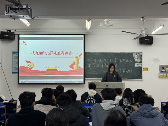 为切实增强员工对有组织犯罪的认知,大力提升法律意识与自我防护水平,11 月 24 日,SUNBET申博组织各班于竞知楼开展了学习《中华人民共和国反有组织犯罪法》主题班会活动。本次活动由各班班长主持,SUNBET申博全体同学踊跃参与。