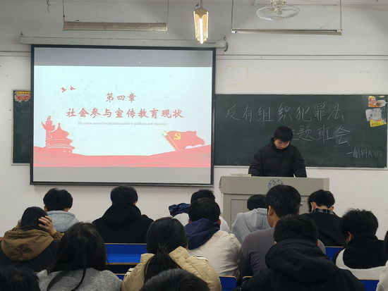 全体同学共同观看了反有组织犯罪宣传视频。视频借助真实案例的生动呈现以及专家的权威解读,使同学们对有组织犯罪的形式、特点及其对社会的恶劣影响有了更为直观且深刻的认识。同时,视频还对《中华人民共和国反有组织犯罪法》中的关键条款与相关法律法规进行了详细阐释,进一步加深了同学们对法律条文的理解与把握。