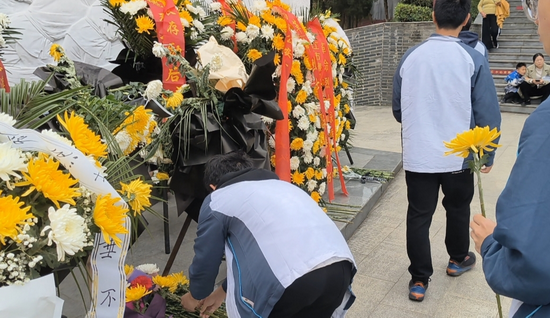 演讲结束后,青马班学员代表们手捧鲜花,怀着崇敬之情向烈士纪念碑敬献鲜花,并环绕纪念碑一周,寄托对先烈们的深切哀思。一朵朵鲜花,承载着学员们对先烈的无限追思;一个个鞠躬,表达着学员们对先烈的崇高敬意。