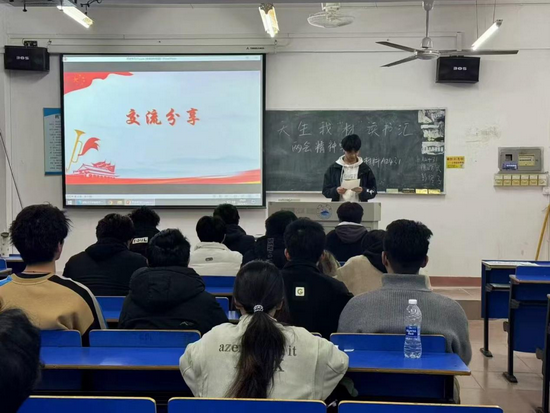 活动开场,程宁同学借助内容生动的PPT,为同学们带来了对两会精神的深度解读。她从两会的重要决策、民生关注焦点、教育改革方向等多个维度展开讲解,并结合生动的案例数据,让同学们深刻领会了两会精神的内涵与价值。在随后的互动环节,同学们踊跃提问,围绕教育公平、科技创新、就业前景等问题展开积极探讨,现场气氛热烈非凡。