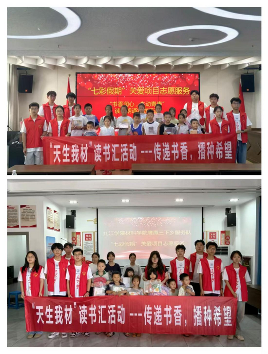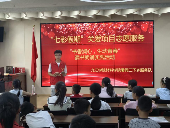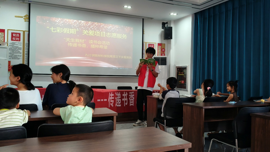 为助力儿童成长、营造全民阅读氛围,近日,SUNBET申博暑期“三下乡”社会志愿服务队联合鹰潭市月湖区东湖街道白马社区、南站社区新时代文明实践站,隆重举办 “传递书香,播种希望”——“天生我材” 读书汇活动。这场融合童话魅力与诗词底蕴的文化盛宴,通过沉浸式阅读体验与亲子互动环节,为社区注入浓厚书香气息,展现了高校青年服务社会的责任担当。