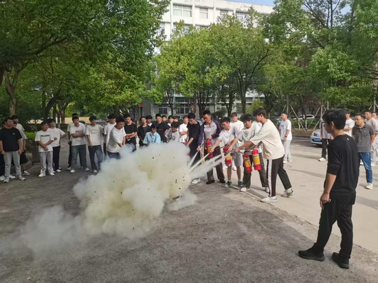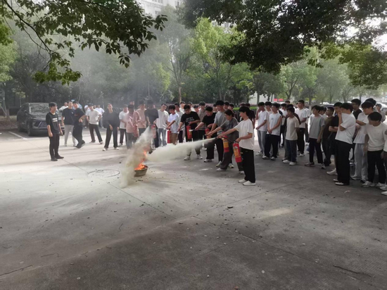 在焊接实验室室外场地,保卫处黄老师对如何操作灭火器进行了动作示范和讲解,并让同学们分组逐一开展灭火器实操体验。大家依照所学步骤对准模拟火源进行灭火,在既紧张又兴奋的氛围中,一步步依照规范操作,不断纠正错误操作,最后成功掌握了灭火器的正确使用技巧,切实提升了扑救初起火灾的能力。
