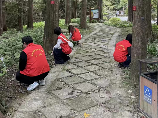 当清晨的庐山还笼罩在淡淡的云雾中,同学们已身着统一的红色志愿服,携带垃圾袋、垃圾夹、手套等工具在景区入口集合。随着活动启动令发出,志愿者们迅速分散至各自负责区域。汗水很快浸湿了志愿服,手套也被泥土与露水浸得湿漉漉,但没人停下脚步,偶尔传来的“这里还有一个”“小心脚下”的提醒,让清晨的山间充满了暖意。