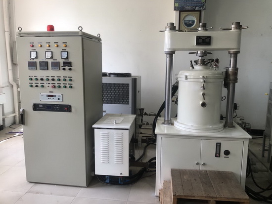 真空热压烧结:一定的真空温度环境下,对样品施加一定的压力,使胚体粉体中的质点在高温作用的同时,还受到机械力的作用,促使胚体中不同粉粒的接触和扩散、流动,使得粉粒重排、粉粒发生滑移,大的堆积间隙被填充,气孔被排除,从而获得致密的块体样品。