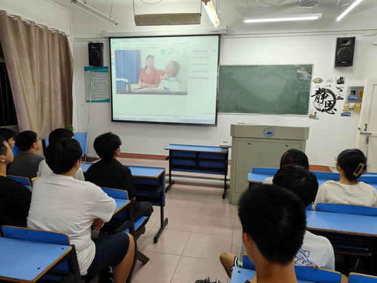 班会上,同学们通过江西智慧教育平台收看了以心理健康教育为内容的安全教育主题公开课。老师围绕员工心理发展的特点和常见心理问题引导同学们了解自己的心理状况。