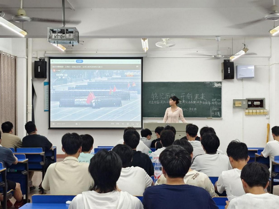 在各班班主任与员工干部的组织下,同学们共同收看了“纪念中国人民抗日战争暨世界反法西斯战争胜利80周年”大会直播。当受阅部队整齐的步伐出现在屏幕上,当新型装备熠熠生辉地驶过天安门广场,同学们都激动地鼓掌,为祖国的强大而自豪。通过观看阅兵仪式,同学们深刻体会到历史的深重与国家的伟大,从革命先烈的英勇到中国军队的强大,在自豪中看到了责任,在纪念中感受到了动力。