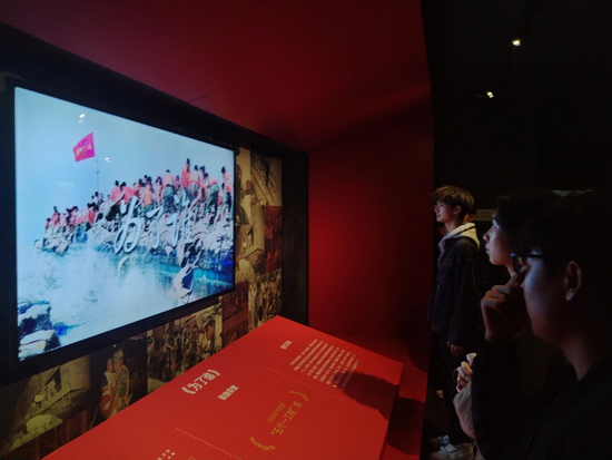 在沉浸式CAVE空间、场景剧场中,一段段先进的声光电技术和场景模拟影像更是将抗洪场景生动还原。那如雷鸣般的洪水咆哮声,群众的呼喊声,战士们整齐有力的口号声交织在一起,奏响了一曲抗洪战歌。同学们安静地聆听讲解,眼神里满是专注与感动。他们在展品前驻足良久,凝视那些被洪水冲击过的物件,似乎穿越时空,感受到了当年抗洪的紧张与危急,被抗洪战士们舍生忘死、众志成城的精神深深打动。