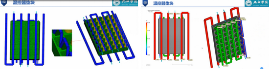在冷却系统的设计中,徐正平高工首先讲解如何从冷却结果中,判定冷却系统设计是否合理的依据,而后以温控器垫块为例,指出凸模侧受到浇注系统的影响,凹模侧内外散温不同,因此需要采用多条冷却水路。通过冷却结果的分析,发现凹模侧蓝色部分,由于采用一条水路,水温升高超过3℃,进而将其修改为两条水路,同时增加水路直径,最终所有指标均达到要求。