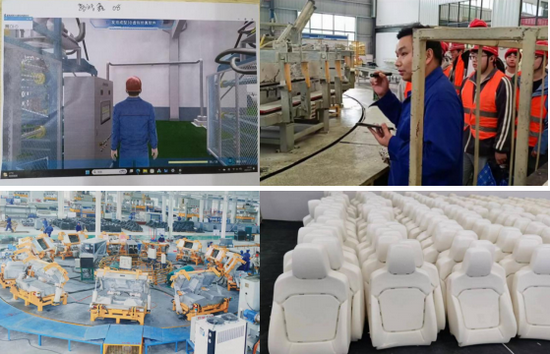 通过发泡成型3D虚拟仿真实验,模拟实际工厂场景下的发泡成型工艺过程,并通过组织员工赴湖北坤钰渝明汽车零部件有限公司参观汽车高端智能轻量化座椅生产过程,通过企业教师的讲解,全面了解发泡成型生产线的工作过程,掌握发泡制品的质量标准和检测方法。