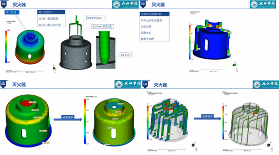 在浇注系统的设计中,徐正平高工首先讲述浇注系统的设计原则,随后以灭火器壳塑件为依据,从模具结构及浇口位置分析结果两方面结合确定浇注位置,从对顶出结果的分析中,确定出由于该塑件的壁厚不合理导致了塑件的顶出时间过长,进而通过修改灭火器壳塑件的壁厚来解决注塑问题。