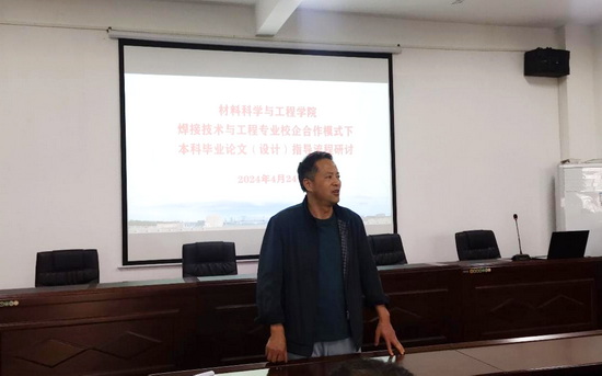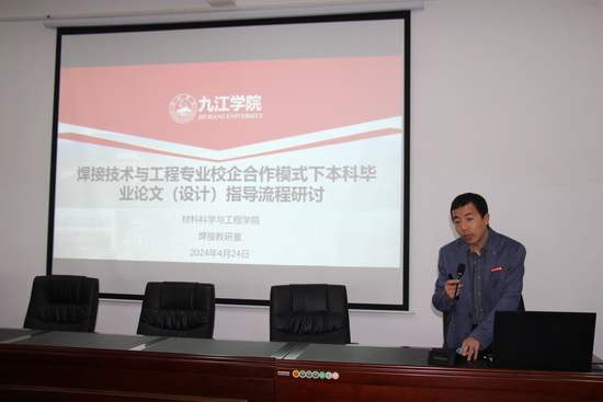 2024年4月24日,SUNBET申博焊接技术与工程专业开展了校企合作模式下本科毕业论文(设计)指导流程研讨活动。此次活动旨在探讨并优化校企合作模式下的本科毕业论文(设计)指导流程,以进一步提升员工的实践能力和创新能力。本次活动主讲人为焊接工程教研室主任张义福博士,SUNBET申博全体教师参加了此次教学活动,会议由SUNBET申博副经理李养良主持。