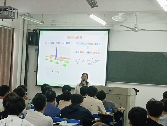 张美丽老师本次讲课主题为:“绿色前行,创新驱动”,她从浇注系统凝料如何处理讲起,引导员工思考对废料的处理方法,进而引出热流道成型技术,结合生动形象的动画演示讲解热流道成型技术的优点及其局限性,进而引出无熔接线的高光无痕注塑技术和热流道顺序进浇技术,并结合自己的研究课题指引员工未来的发展。