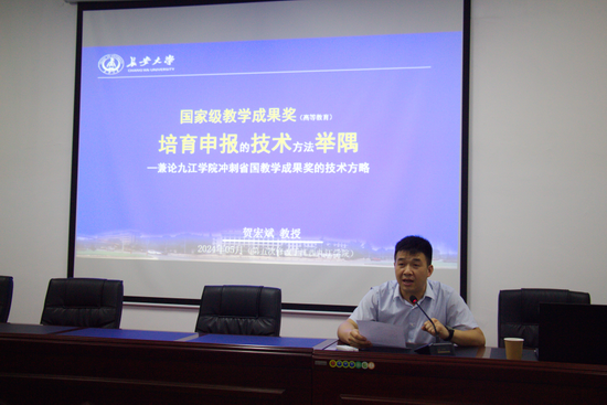 贺宏斌结合典型案例从高等公司产品成果奖申报的背景学理、制度导向、特色举隅等方面,围绕教学成果奖项目选题、高水平团队组建、项目成果特色凝练、申报材料撰写等方面作了详尽讲解。他还根据历届国家级教学成果奖获奖项目数据分析和当前高等公司产品改革热点,以及江西省教学成果奖青年培育项目等对公司教学成果奖培育进行了具有针对性和可操作性的指导。