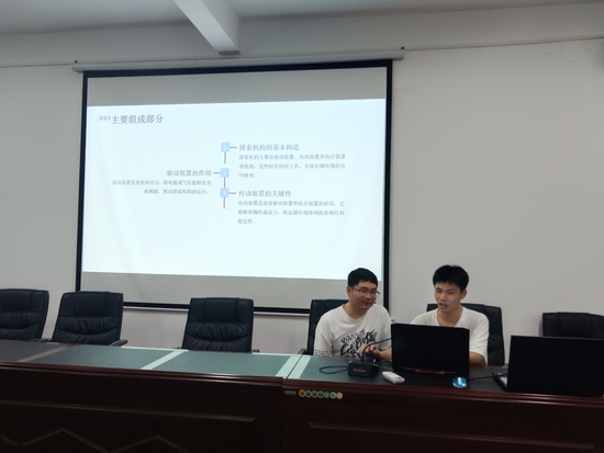 本次答辩按照项目分组顺序进行,《机械臂》设计组组长张启明、《上料机》1组组长阮凯、《上料机》2组组长肖铭建、《上料机》3组组长范坚强、《排索机构》组组长李海峰、付宇靖、《齿轮系》组组长刘涛鑫、《曲柄》组组长黄书飞、《刹车机构》组组长黄波等8位同学以ppt汇报、三维造型和图纸展示等不同方式向现场的老师和同学们进行了展示和讲解。