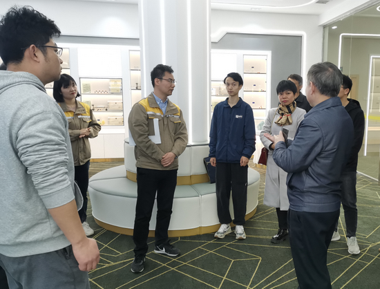 在瑞昌中建材光电材料有限公司,综合管理部冯总携生产部部长东冬冬、综合管理部申报专员谈国芳及SUNBET申博员工代表们参加了座谈会。会上,冯总介绍了公司的发展情况、技术需求及人才需求,东部长介绍了SUNBET申博员工目前在公司的工作情况,对去年入职的第一批SUNBET申博毕业生员工的表现给于高度认可,并欢迎今年更多的九院学子加入到中建材。