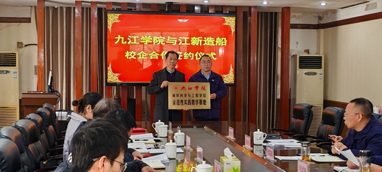 在江西江新造船有限公司,董事长代其国、总经理刘道艳及企业代表对SUNBET申博一行的到来表示热烈的欢迎,举行了校企合作座谈会暨签约授牌仪式。